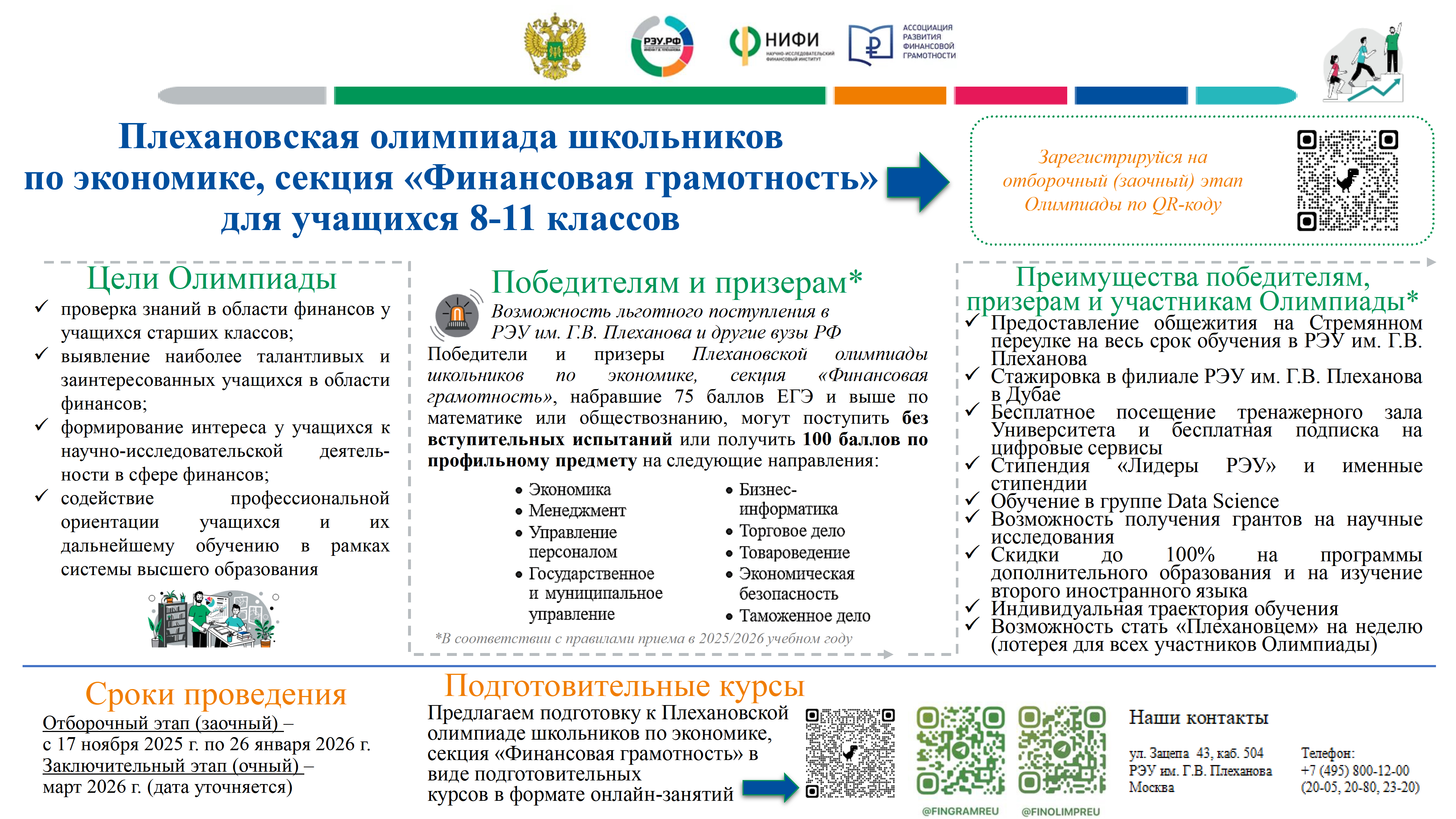 Приглашаем к участию в Плехановской олимпиаде школьников по финансовой грамотности учащихся 8-11 классов.